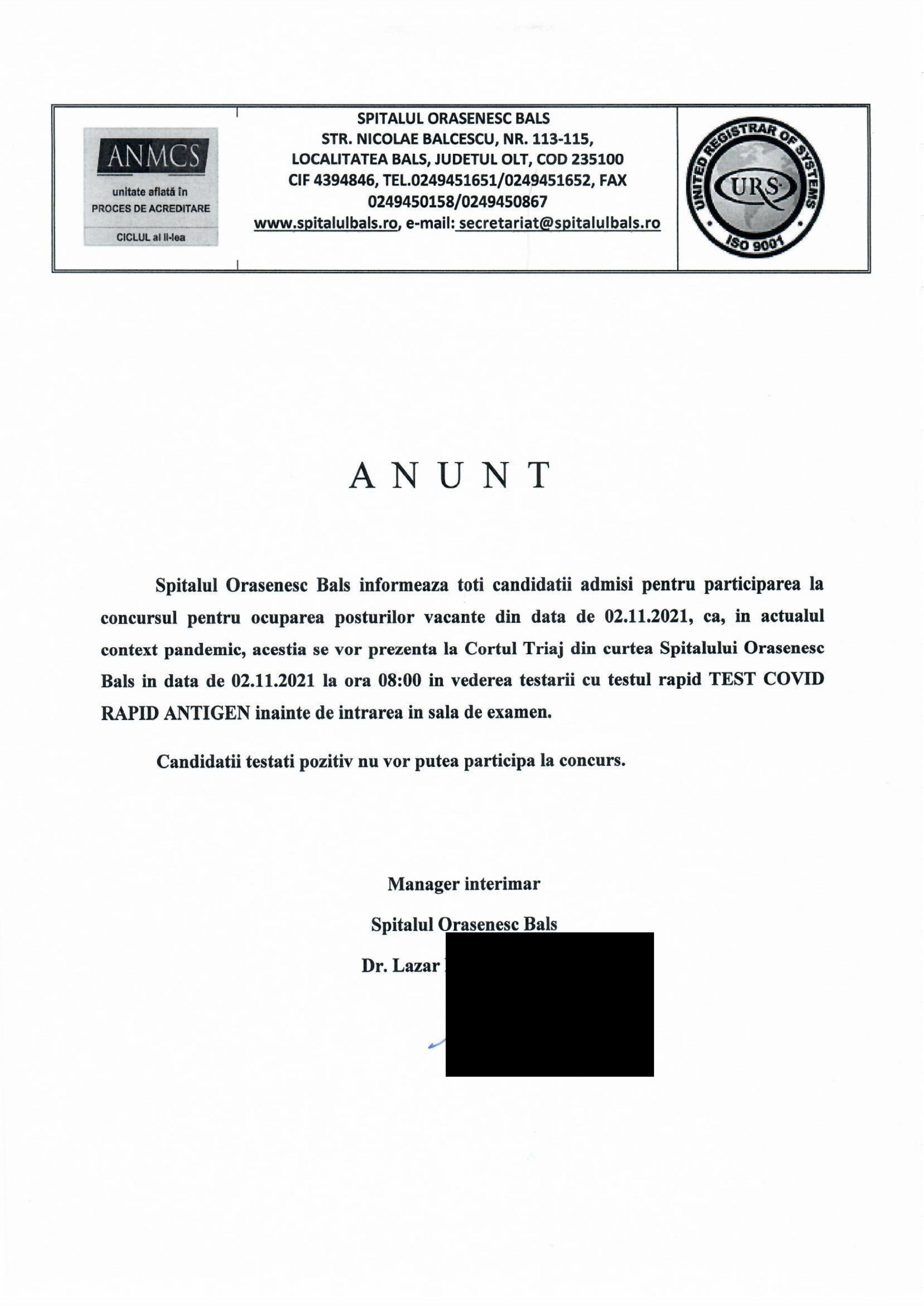 Descarca anunt privind disponibilitatea Spitalului Orasenesc Bals de a colabora cu voluntari.pdf (565 KB)